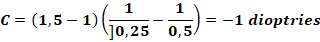 Pour un œil situé au foyer principal image P=1¯¯¯¯¯¯¯¯¯¯OF′=C