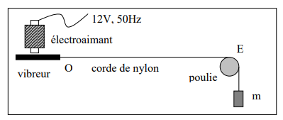 vibreur ; à l’autre extrémité, on suspend une masse m. La corde passe en E dans