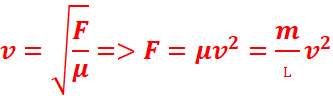 linéique de la corde est μ et la masse m vaut 5 kg. Calculer la célérité