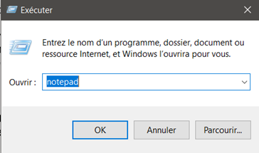 · L’outil «exécuter»: Sous Windows 10, dans la zone de recherche rapide, tapez «exécuter». Une fenêtre s’ouvre dans laquelle vous pouvez saisir une commande: