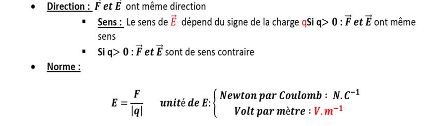 b-Calculer la valeur du champ électrique qui règne en ce lieu.