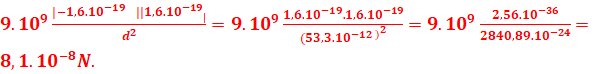 1- F = |q|.E = 1,6.10-19 x 100 =1,6.10-17