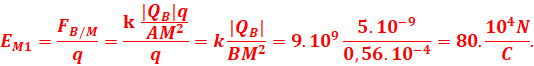 E=2E1cos60=2x9.10-9cos60=15,6.10-9 NC-1