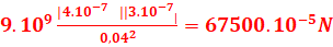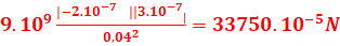 C ; q2 =+10-8 C ; k=9.109 USI.