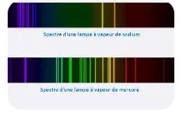 Un spectre discontinu est produit par un gaz excité (ex : vapeur de mercure ou de sodium).