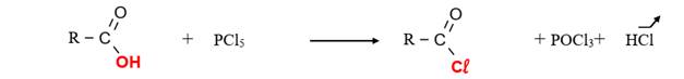R – COCl + NH3⟶ R – CO – NH2 + HCl