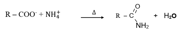 2e étape : Déshydratation du carboxylate d’ammonium par chauffage :