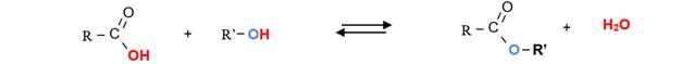 Équation de la réaction. CH3-OH+ CnH2n+1-COOH ⇌ CnH2n+1-COOCH3 +H2O