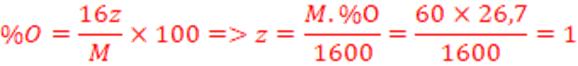 %O=(2X16/M) x100 =>M=3200/%O=3200/(100-(58,8+9))=