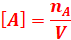 Soit n le nombre de moles de soluté introduit dans l’eau pour obtenir un volume V de solution, la concentration molaire de la solution obtenue est :