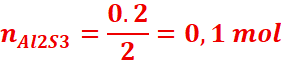 =>mAl2S3 =nAl2S3 xMAl2S3 =0,1x150=15g.