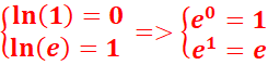 X=ex =1=>x=ln1=0