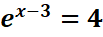 <= > x-3=ln4 =>x=3+ ln4 =>S={3+ ln4 }