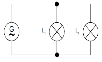 ; 2 A ». Elle alimente deux lampes identiques L1 et L2.