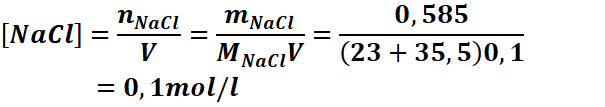 donne les masses molaires atomiques :Na :23 ; Cl :35,5