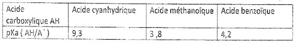 1.Ecrire l’équation d’ionisation de ce composé.