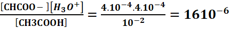 Ca=10-2 mol.l-1, [CH3COO-]=4.10-4 et [H3O+]