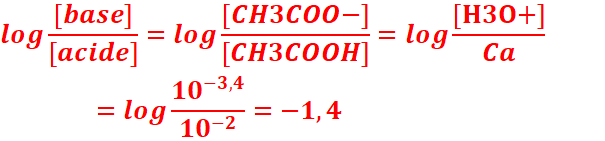 log [Base]/[Acide]=3,4+1,4=4,8